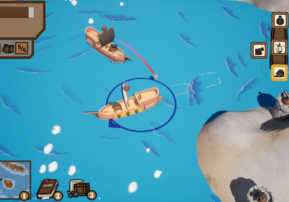 The second core idea is that navigating a ship requires a combination of many elements. The modular ship parts that make up the boat are controlled one at a time. Players must utilize all the elements of the ship in concert to travel as desired.